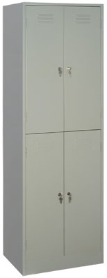 Металлический архивный шкаф разборный. Состоит из двух секций с четырьмя отделениями. Каждая секция содержит одну полку. Дверь шкафа запирается на индивидуальный врезной замок.