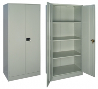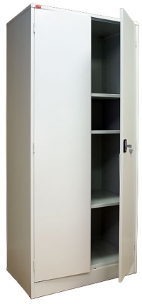 Металлический архивный шкаф. Внутри шкаф содержит четыре полки, высота которых регулируется. Дверь укомплектована замком повышенной секретности. Используется для хранения офисных бухгалтерских документов и архивов.