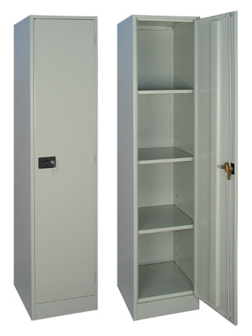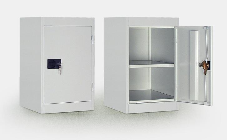Металлический архивный шкаф. Внутри шкаф содержит одну полку, высота которой регулируется. Дверь укомплектована замком повышенной секретности. Используется для хранения офисных бухгалтерских документов и архивов.