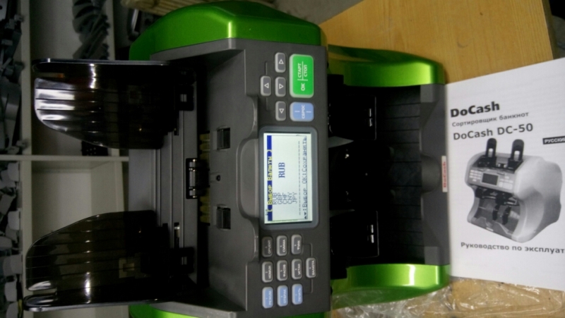 Сортировщик банкнот DoCash 50V (8 валют) Гар.6 мес. Отличное состояние, небольшой пробег, состояние как у нового. Выполнено тестирование электронных компонентов, техническое обслуживание, установлено последнее ПО на 8 валют, в т.ч. на новые 200 и 2000 руб.